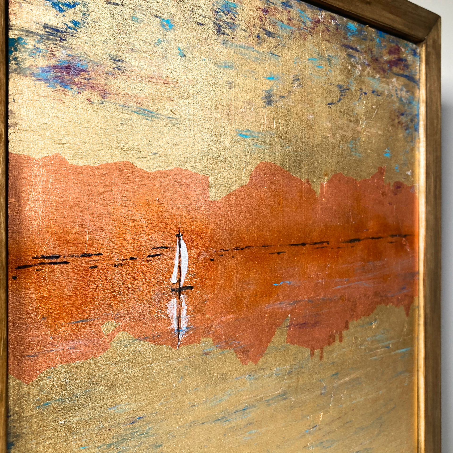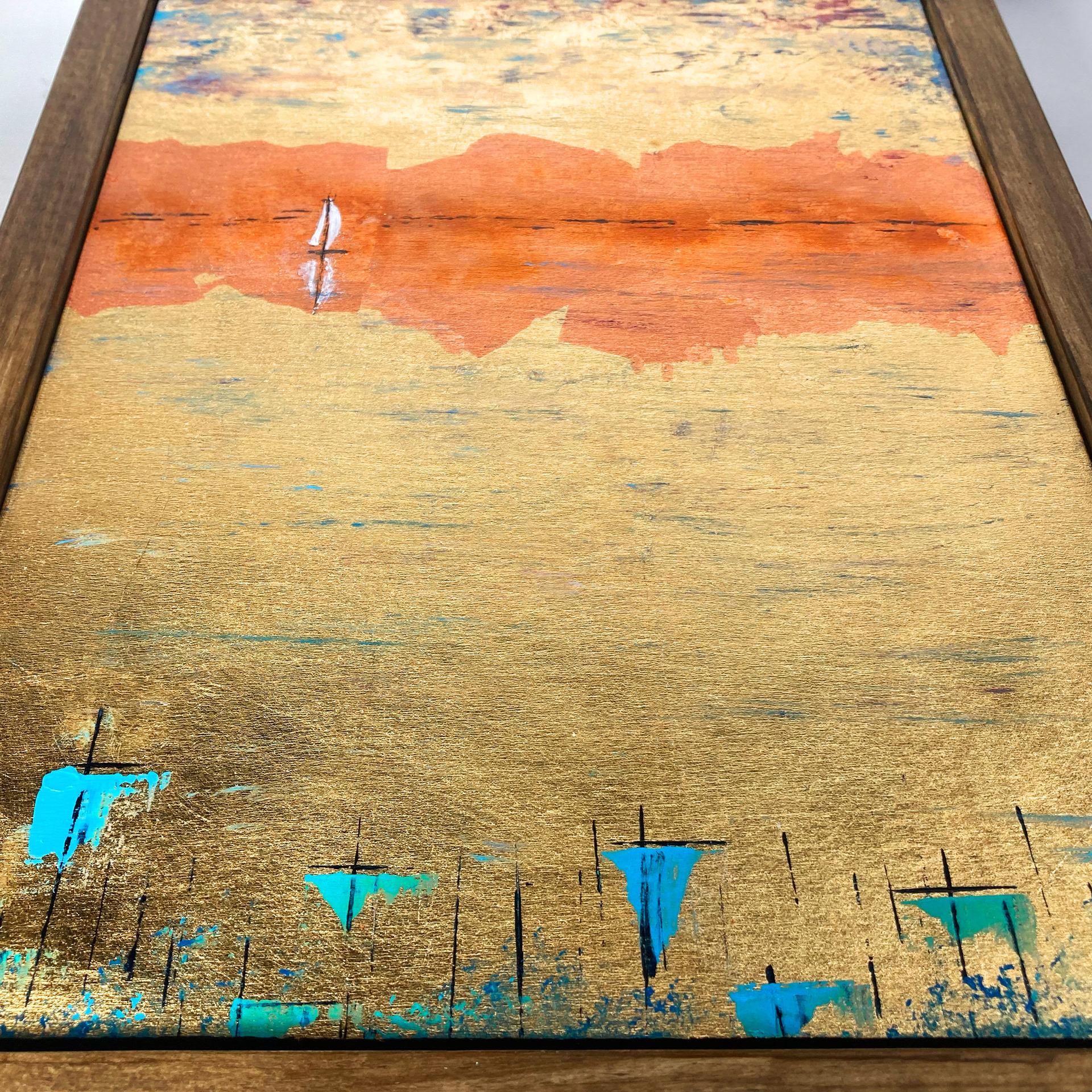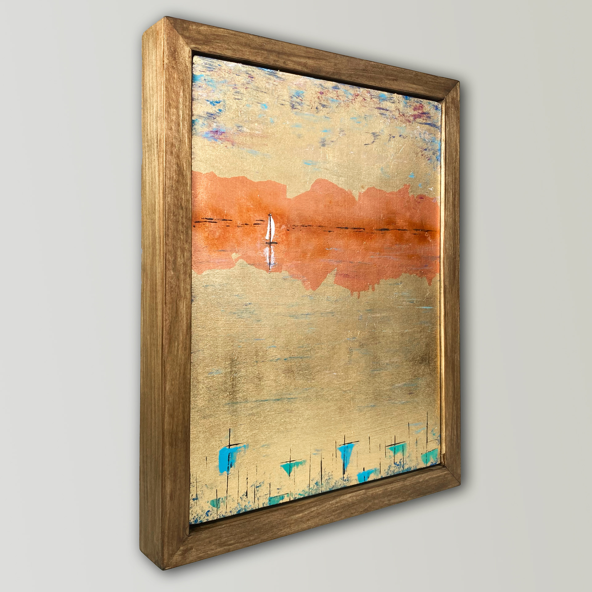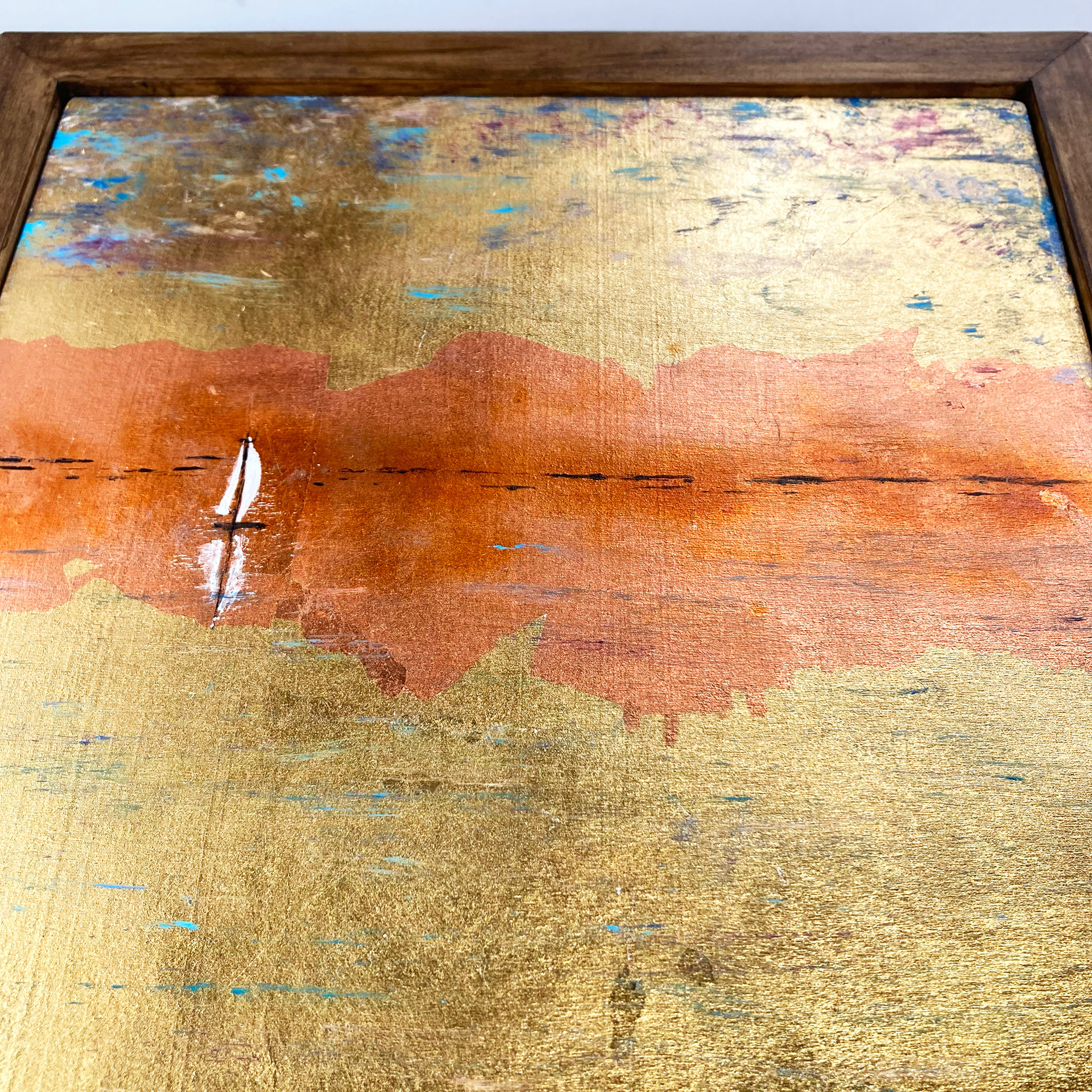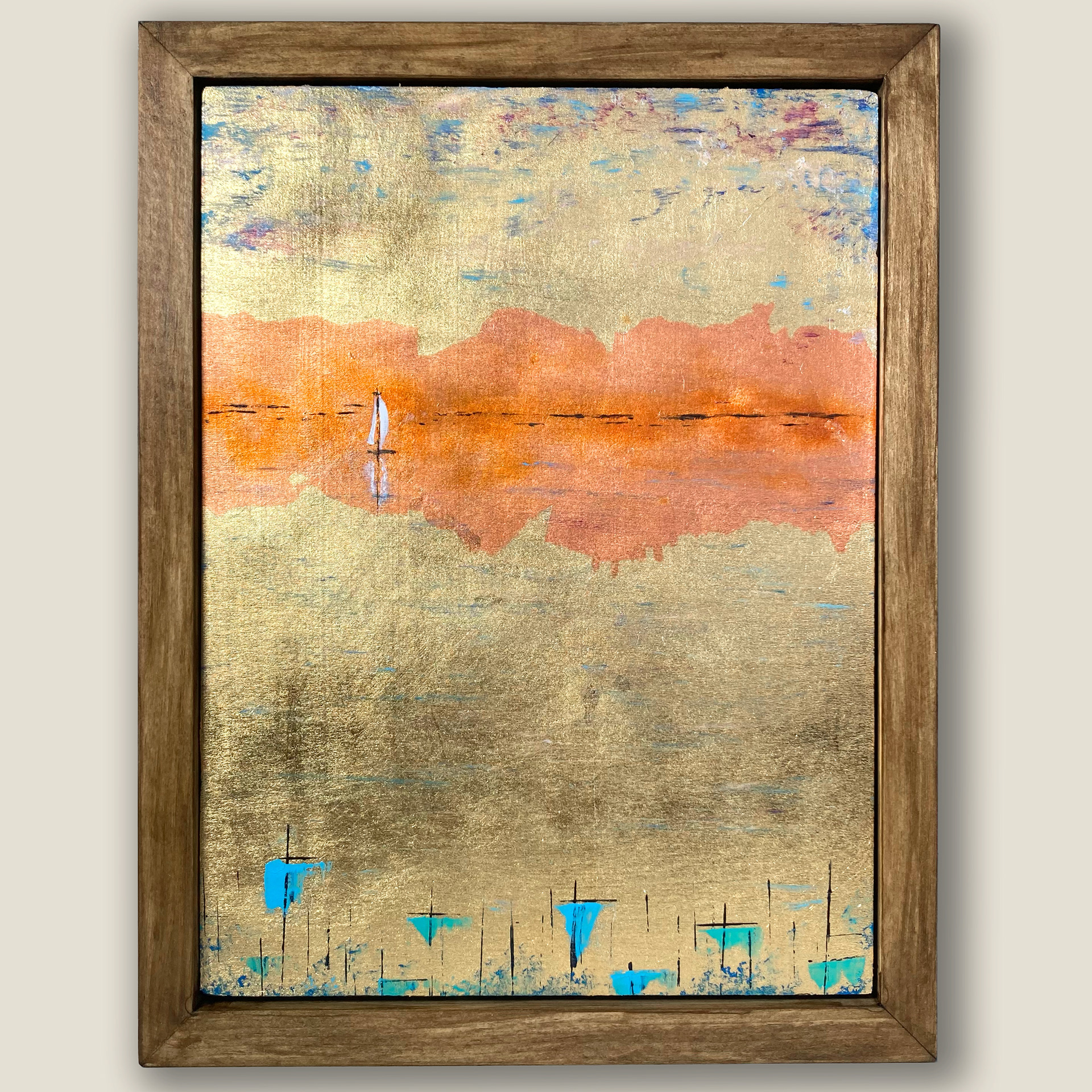 9x12" in handmade frame. Mixed media and metal leaf. $380