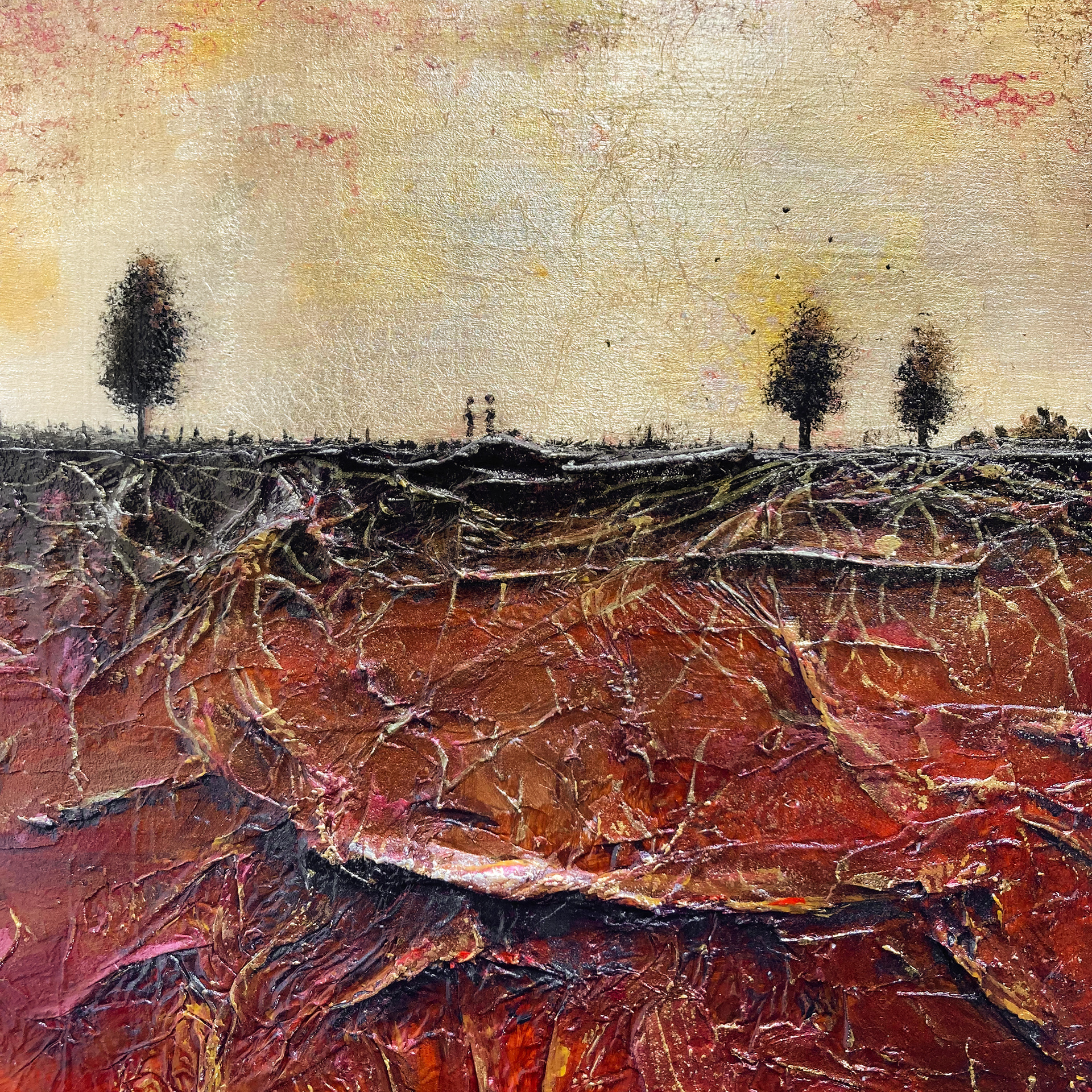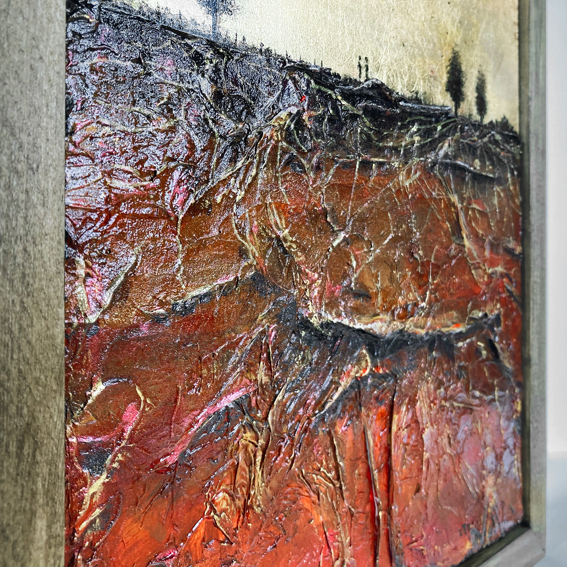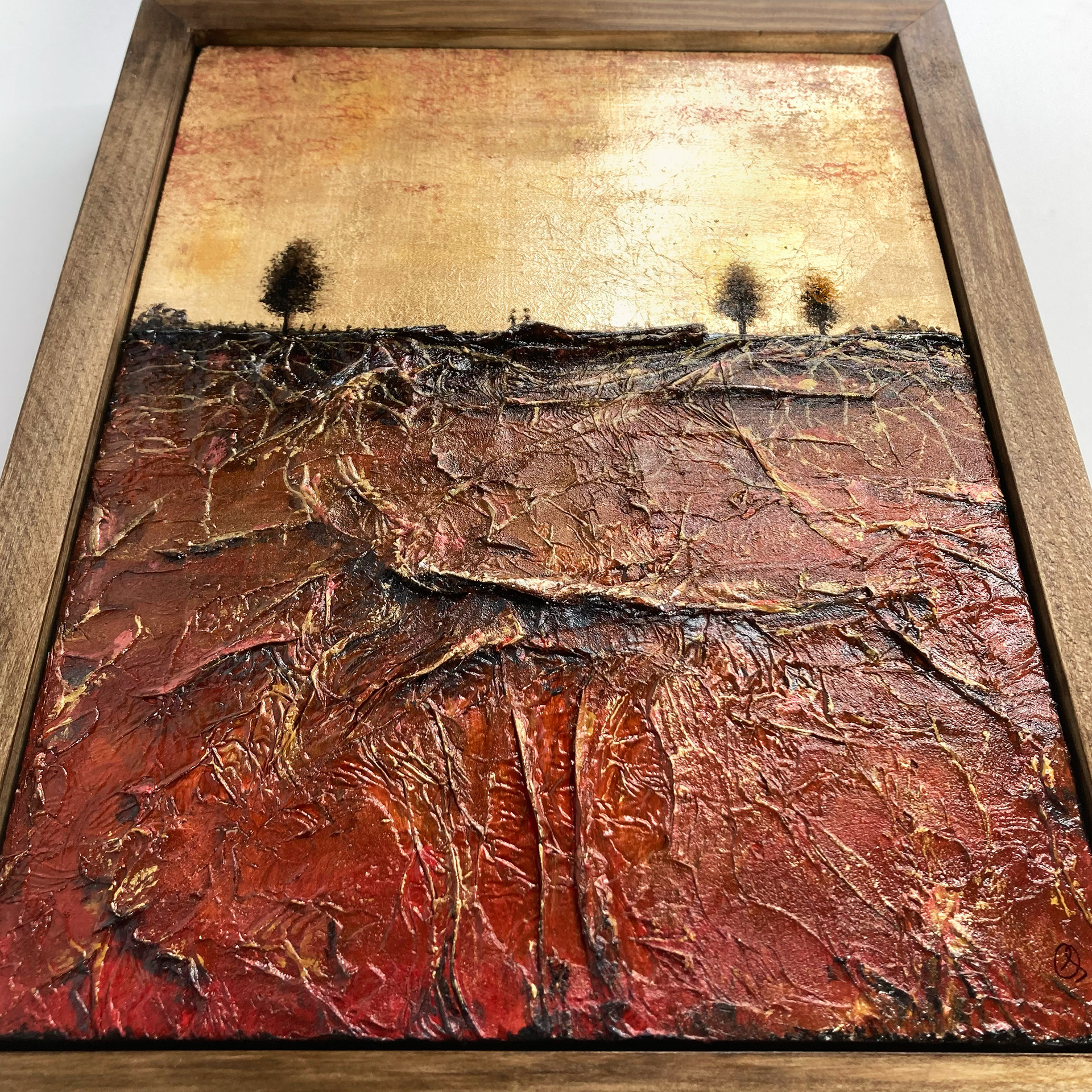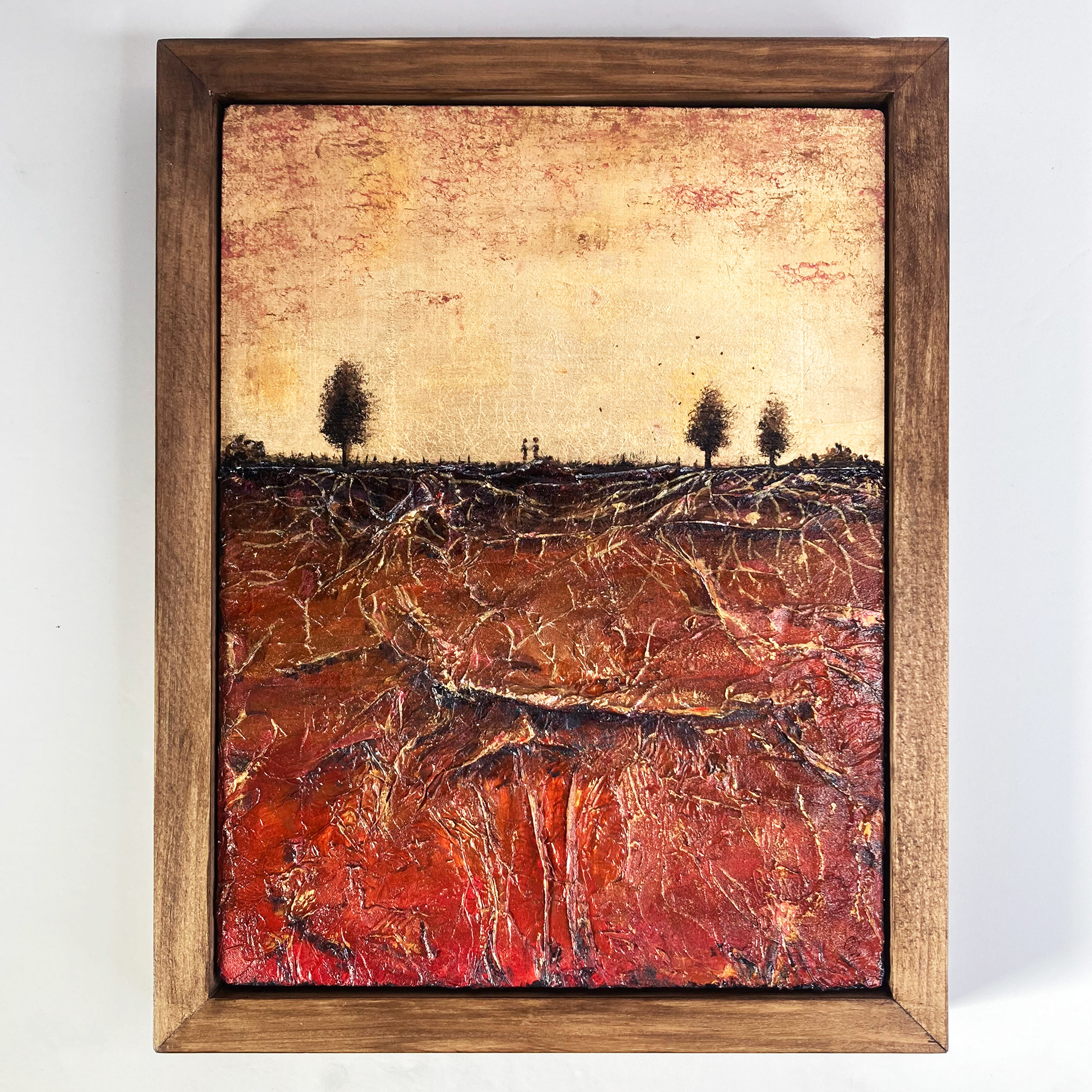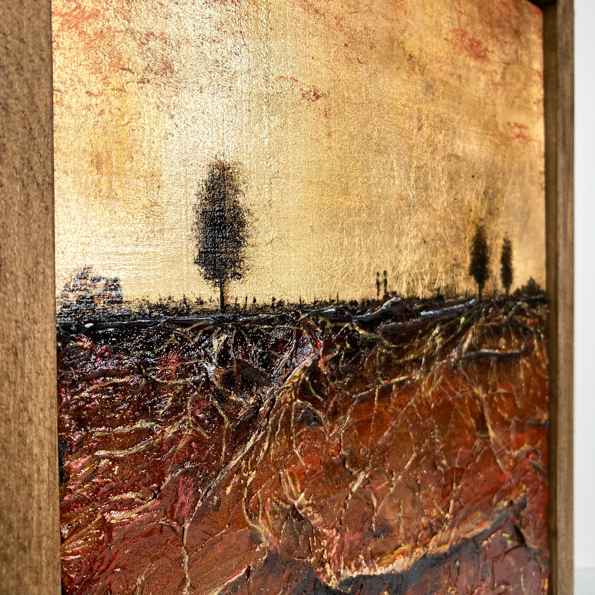 9x12" in handmade frame. Mixed media and metal leaf. $380