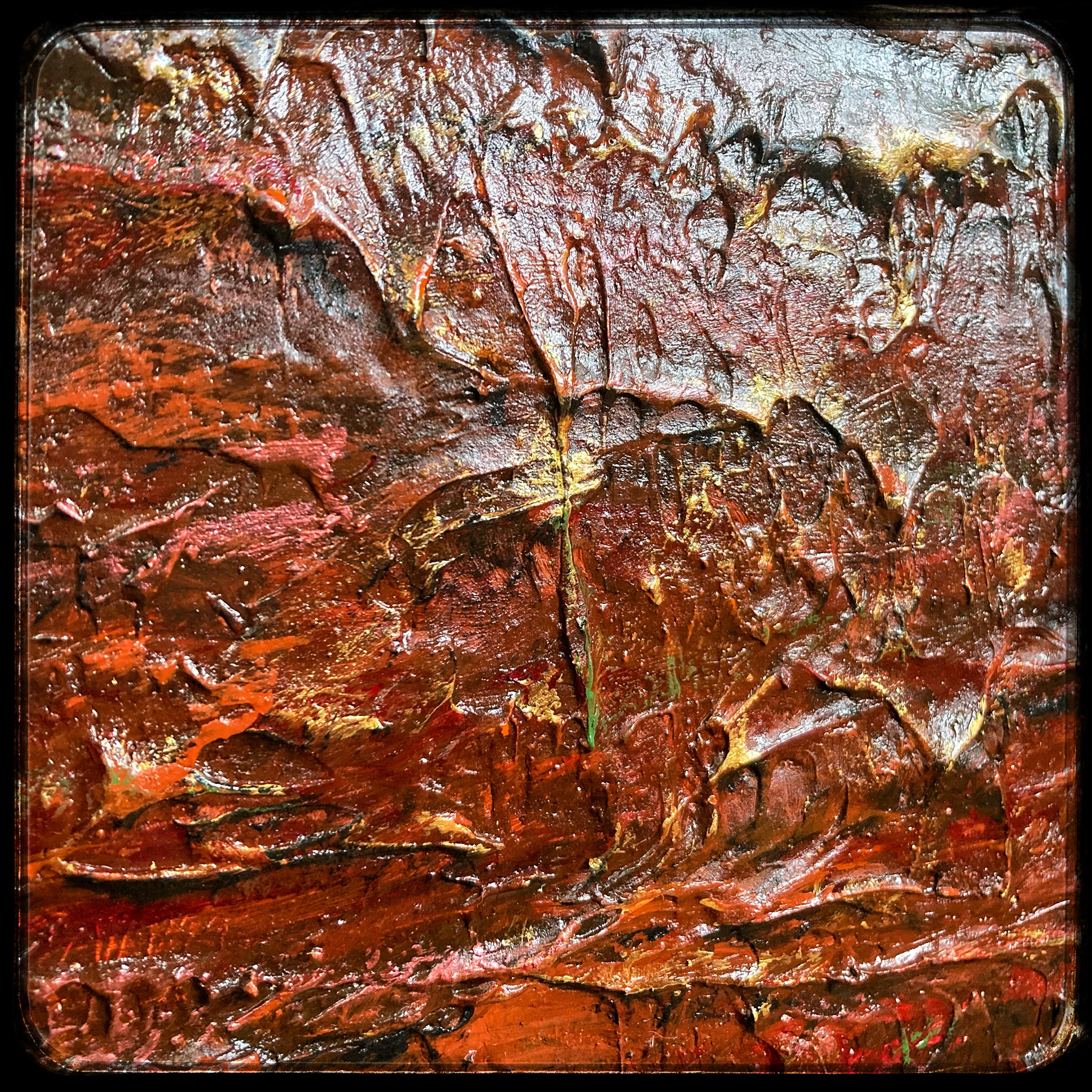 24x36" in handmade frame. Mixed media and metal leaf. $2500