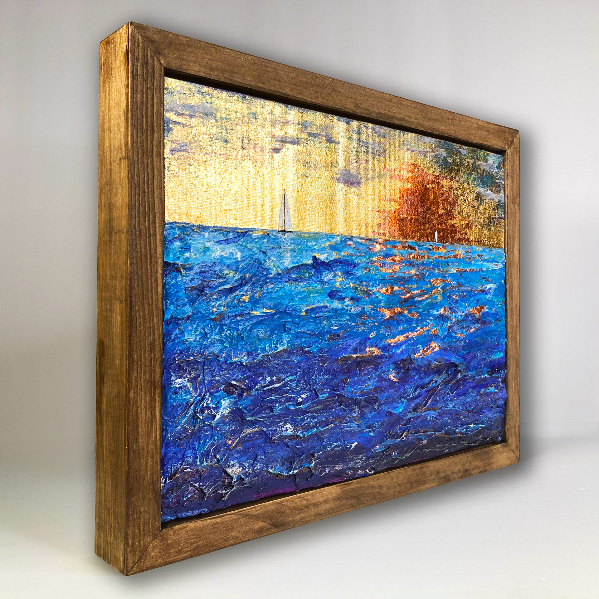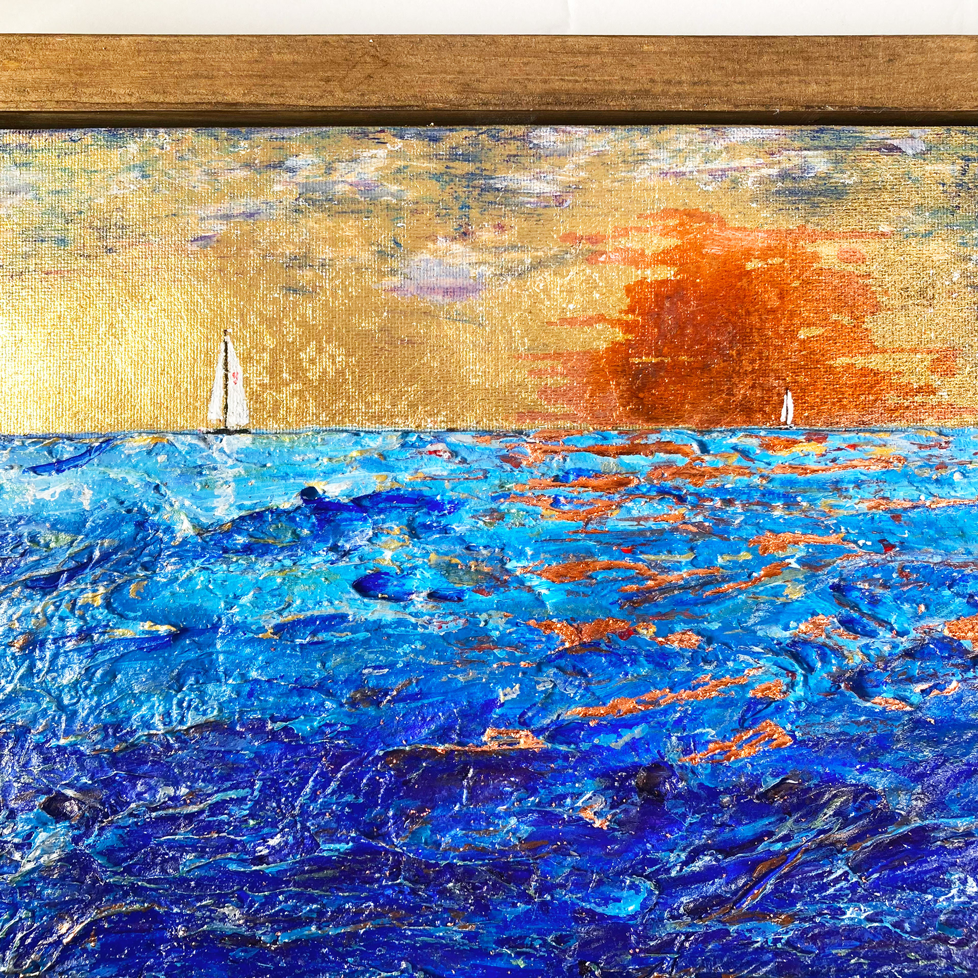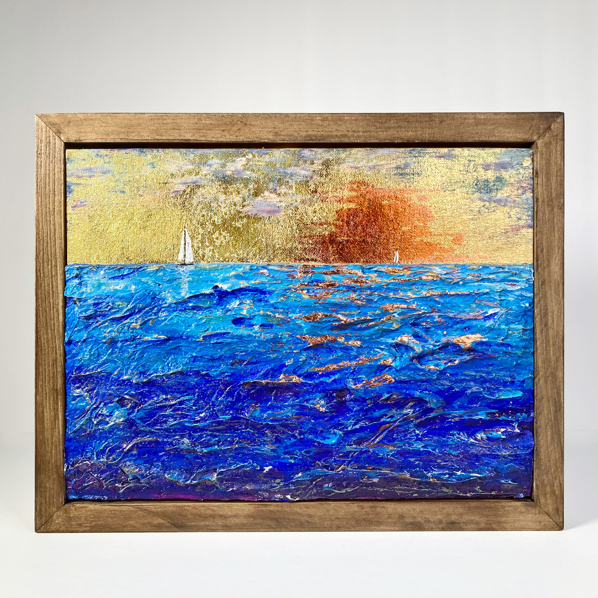 9x12" in handmade frame. Mixed media and metal leaf. $380