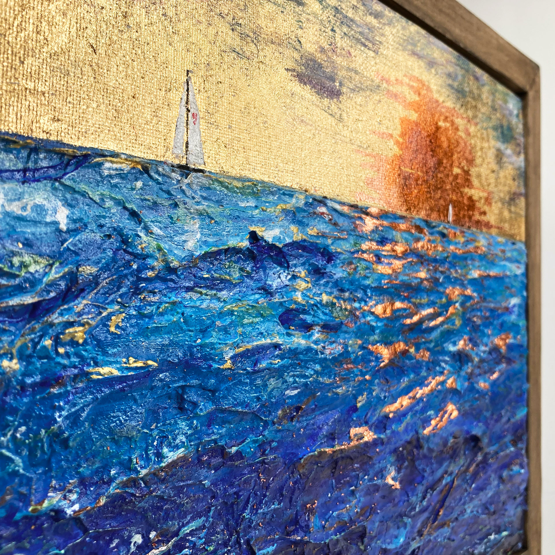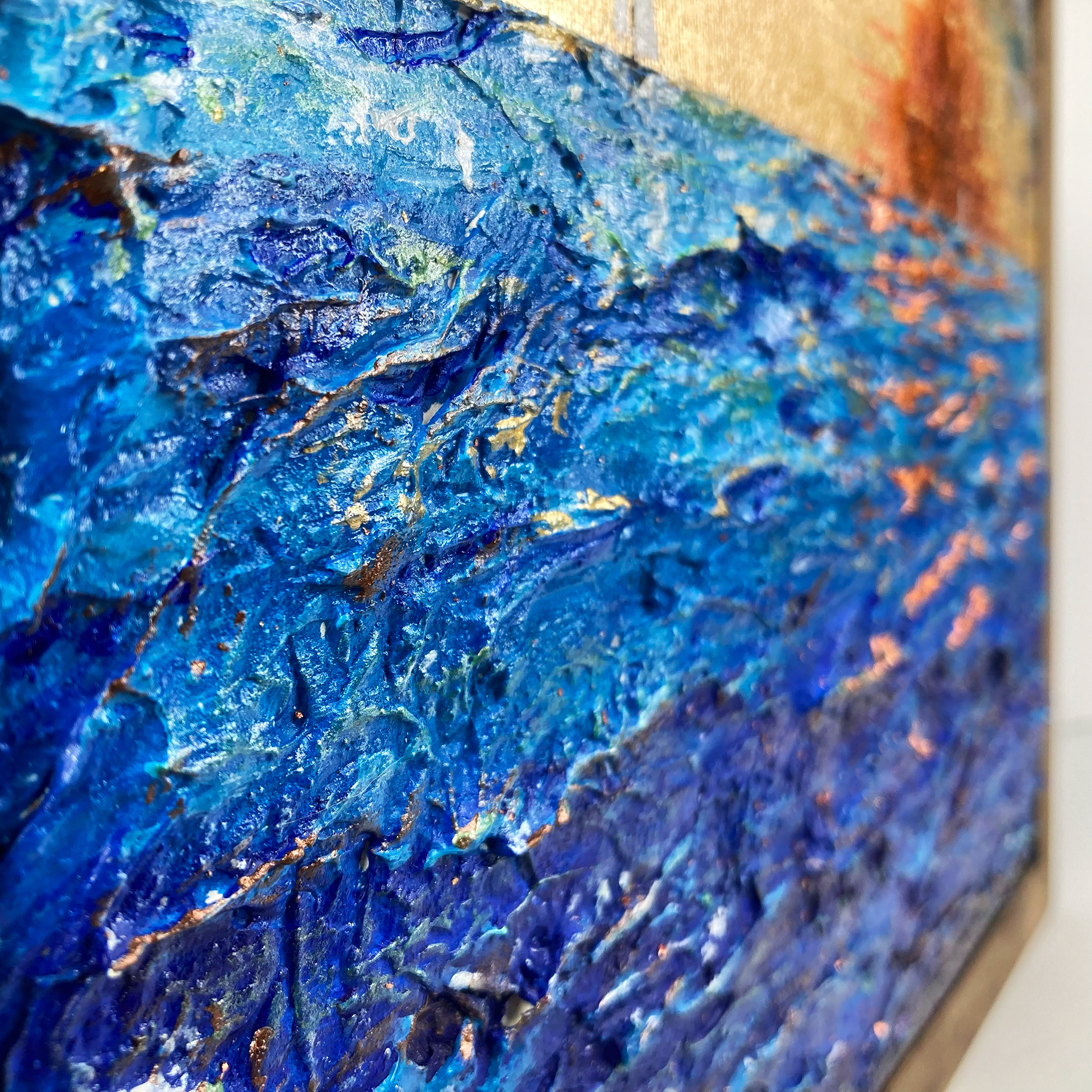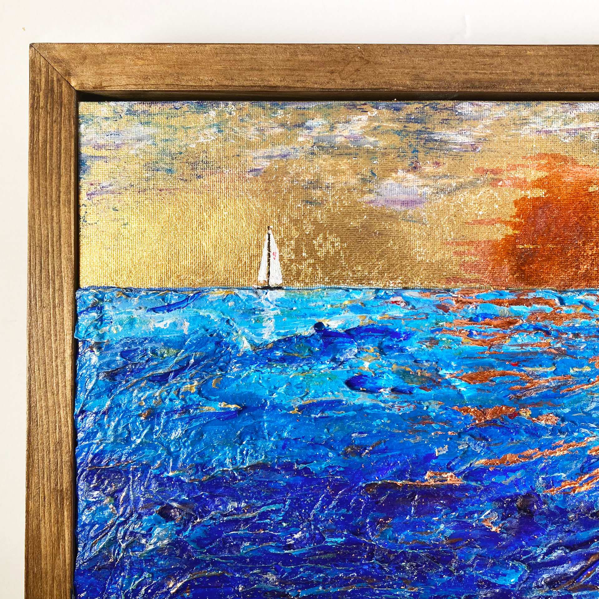 9x12" in handmade frame. Mixed media and metal leaf. $380